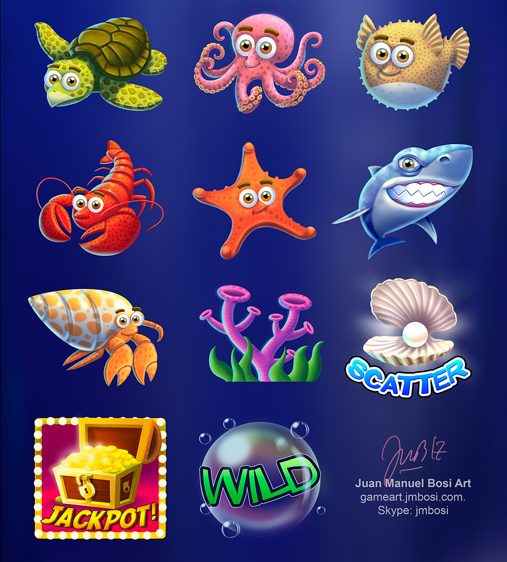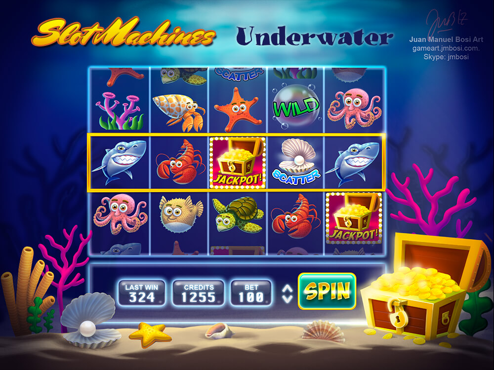 Game Design, Slot Machines Design, Underwater background.